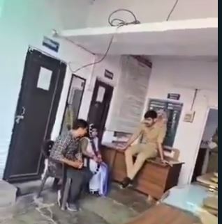 लखनऊ : कमिश्नरेट के मदेयगंज थाने में राजशाही अंदाज में पुलिसकर्मी द्वारा पीड़ित की फरियाद सुनने का अनोखा वीडियो सोशल मीडिया पर वायरल