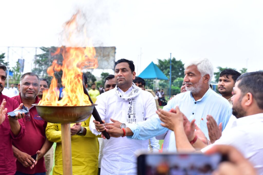 जिला अध्यक्ष नरेश तोमर, भाजपा प्रवक्ता अवनीश त्यागी, बीएसए डॉ. रितु तोमर, सीबीएसई ऑब्जर्वर सुशील त्यागी, सीबीएसई तकनीकी प्रतिनिधि दीपक राणा, अजय चौहान और वॉलीबॉल में भारतीय कप्तान अलाउद्दीन चौधरी ने अपनी गरिमामयी उपस्थिति से इस कार्यक्रम की शोभा बढ़ाई और ‘माँ सरस्वती की प्रतिमा’ के समक्ष दीप प्रज्वलित कर इस शानदार आयोजन की शुरुआत की। गुब्बारे हवा में उड़ गए, जेएमएस के छात्रों ने अपने शास्त्रीय नृत्य प्रदर्शन से हवा में दिव्यता घोल दी और जल्द ही सीबीएसई क्लस्टर XIX की मशाल सभी सौम्य व्यक्तित्वों द्वारा जलाई गई। ढोल बजने लगे, झंडे ऊंचे उठाए गए, 350 टीमों के नाम गर्व से घोषित किए गए क्योंकि मार्च पास्ट शुरू हुआ और हर जगह गर्व और सम्मान का संचार हुआ। स्कूल चेयरमैन श्री राकेश सिंहल ,प्रबंध निदेशक डॉ आयुष सिंघल, सचिव रोहन सिंघल, महानिदेशक सुभाष गौतम और प्रिंसिपल डॉ निधि मलिक ने सभी टीमो का हार्दिक स्वागत किया और अतिथियों का गर्मजोशी से स्वागत किया। बाद में सोमेंद्र तोमर ने खिलाड़ियों को संबोधित किया, उन्होंने सभी खिलाड़ियों को एक साफ-सुथरा और निष्पक्ष खेल प्रदर्शित करने के लिए प्रेरित किया और उन्हें जीतने के बजाय भाग लेने पर ध्यान केंद्रित करने का आग्रह किया। अंत में गणमान्य व्यक्तियों द्वारा गेंद की सर्विस की गई और क्लस्टर XIX वॉलीबॉल बॉयज अंडर 14, 17 और 19, 2025 की धमाकेदार शुरुआत हुई।