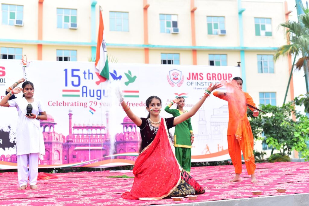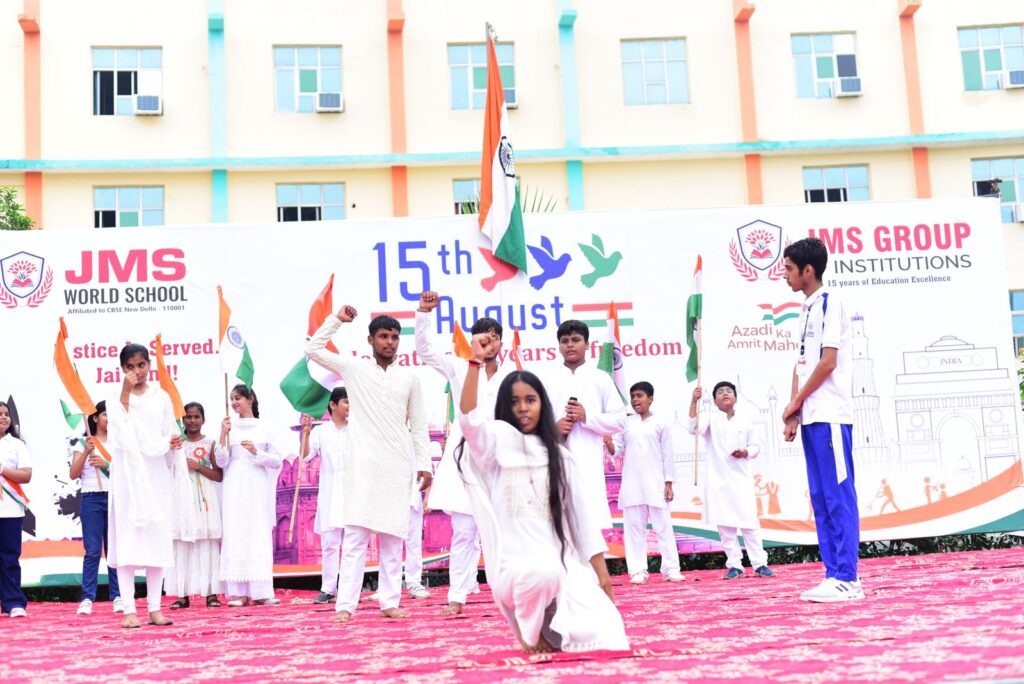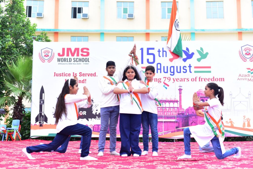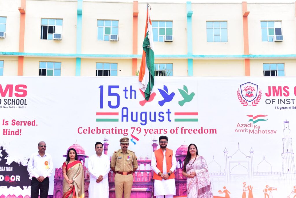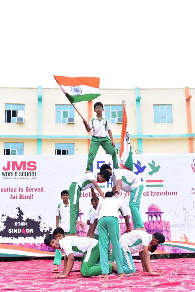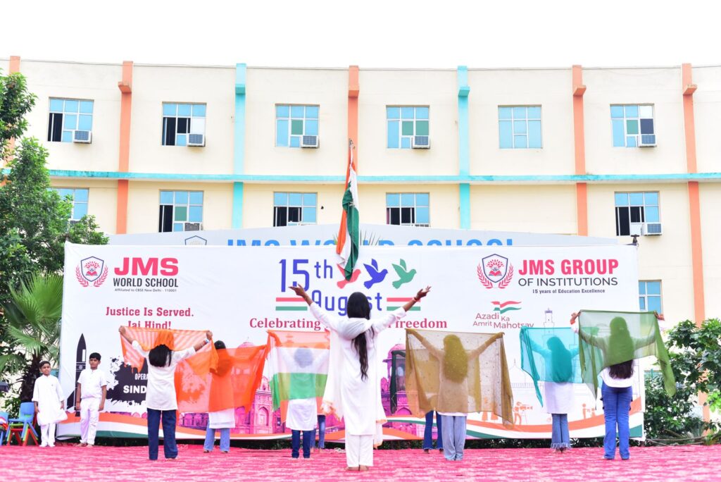 जेएमएस वर्ल्ड स्कूल ने 79वां स्वतंत्रता दिवस सिर्फ मनाया नहीं, बल्कि उसे जीया। चारों ओर केसरिया, सफेद और हरे रंग की छटा बिखर गई , और हर छात्र को अपने देश की जय-जयकार करते और अत्यंत सम्मान तथा गर्व के साथ झुकते हुए सुना व देखा जा सकता था।