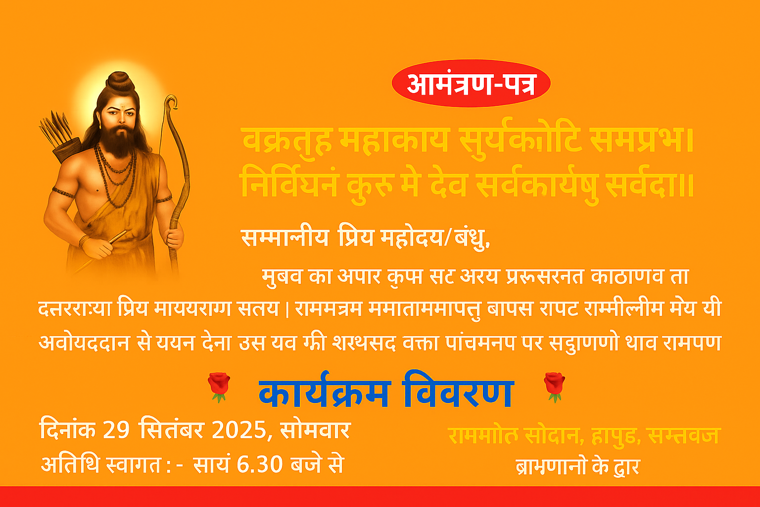 एडिटर इन चीफ राजकुमार शर्मा आज दिनांक 27 सितंबर 2025 दिन शनिवार को श्री लक्ष्मीनारायण मंदिर, चंडी रोड हापुड़ में…