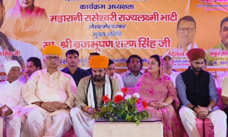 हापुड़ जिले के पिलखुआ के फार्म हाउस कान्हा श्याम मेंसाठा चौरासी में गूंजी पूर्वांचल के शेर की दहाड़ और जैसलमेर की महारानी की ललकार हापुड़ जिले के पिलखुआवासियों को विदित है की ठाकुर अजय चौहान की अगवाई में आज दिनांक 5 अक्टूबर 2025 को पिलखवा क्षेत्र स्थित कन्हा श्याम मंडप में सर्व समाज का दीपावली मिलन एवं सहभोज कार्यक्रम रखा गया था। जिसकी तैयारी पिछले कई दिनों से आयोजक मंडल करता आ रहा था अंततः मेहनत रंग लाई समय अनुसार दीपावली मिलन एवं सहभोज कार्यक्रम दोपहर 12:00 बजे आरंभ होना था अतः सुबह से ही क्षेत्र वासियों का जमावड़ा कार्यक्रम स्थल पर लगने लगा पूरी तैयारी एवं जोर शोर के साथ कार्यक्रम अपने यथा समय पर प्रारंभ हुआ। और सम्मानित मंच देश प्रदेश की चिर परिचित एवं प्रतिष्ठित हस्तियों से शोभायमान हो गया जहां एक तरफ मुख्य अतिथि के तौर पर अखिल भारतीय कुश्ती संघ के पूर्व अध्यक्ष एवं सांसद बृजभूषण शरण सिंह मंच पर आसीन थे।